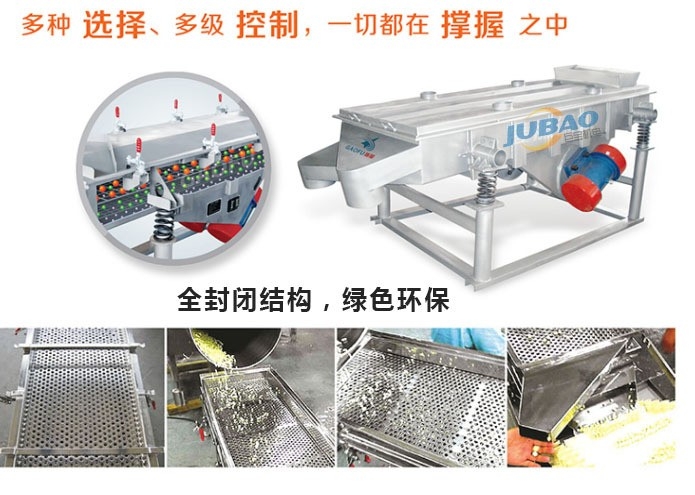 巨寶YS直線篩是由振動電機、篩箱、篩網、傳振體、減振裝置組成。采用優秀的臥式電動機作為動力源,使物料在篩網上被拋起同時向前作直線運動,可配備單層或多層篩網以達到分級、除雜、除粉、檢驗、終、洗選、脫水等目的。以合理匹配的篩網達天篩分目的。物料從經料機均勻地進入篩機的進料口,通過多層篩網產生數種產品和不合格的篩上物、篩下物分別從各自的出口排出。可用于流水線中實現自動化作業。