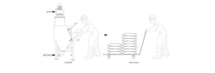 通過手動脫袋和自動傾倒,物料通過重力落入儲料斗,完成脫袋卸袋工作。