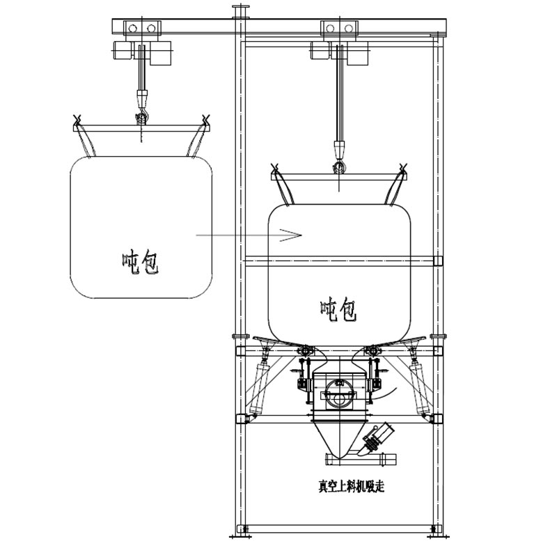 吊裝系統:集成電動葫蘆或叉車接口,實現噸袋快速吊裝定位,減少人工搬運。